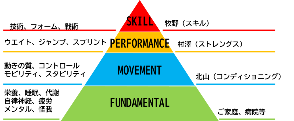 パフォーマンスピラミッドの図:様々な要素がスキルの土台になっていることがわかる