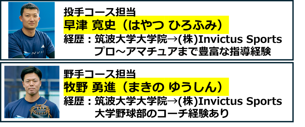 ※リニューアルオープンに伴い、投手コースは早津が担当します。