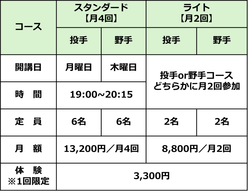 ⚾開講コース概要⚾