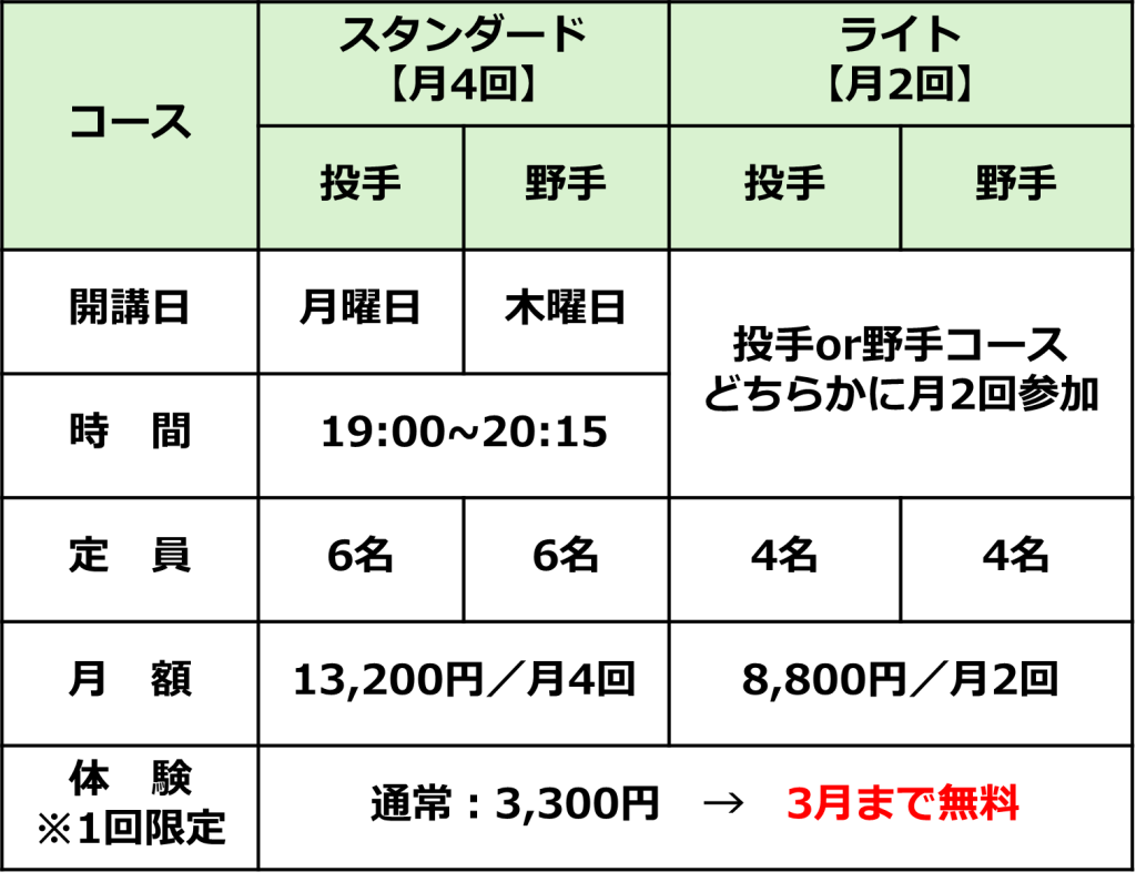 ⚾開講コース概要⚾