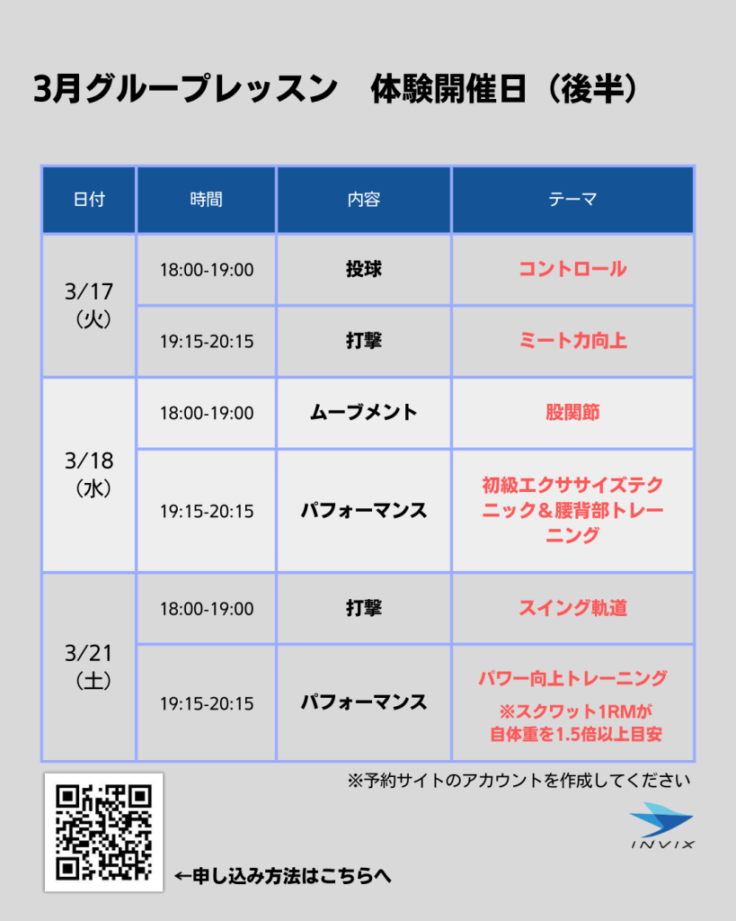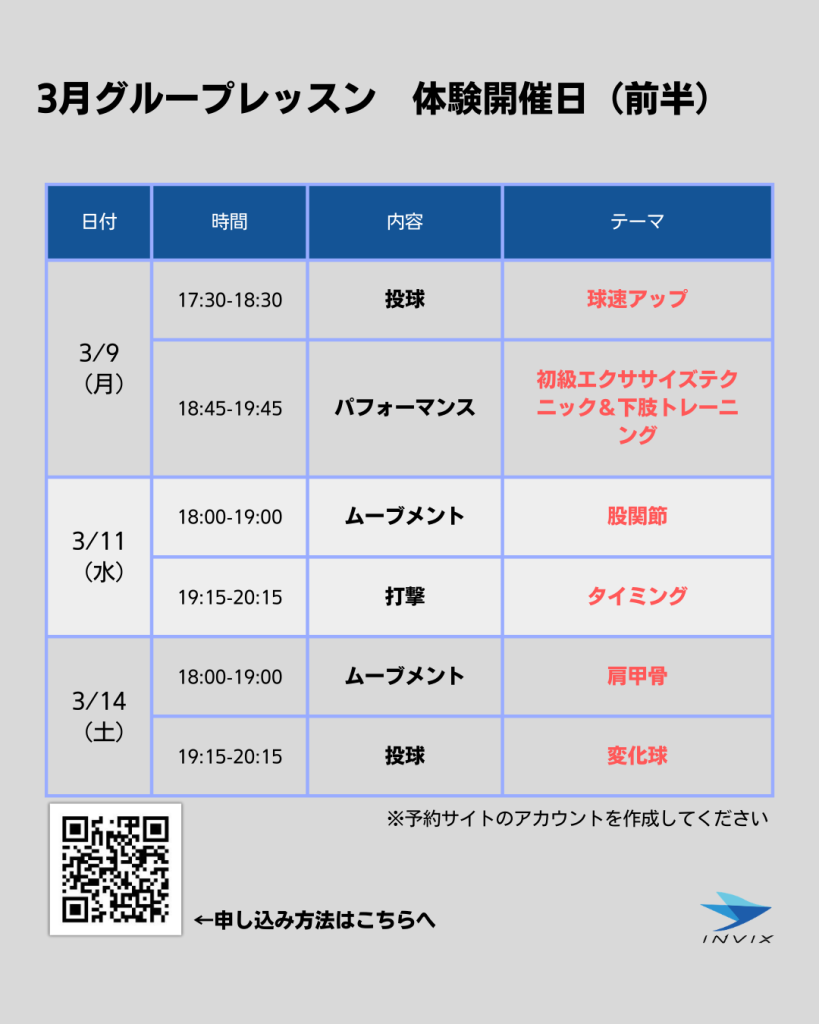 今後の本格オープンに向けて、3月もグループレッスン体験会を開催する運びとなりました。