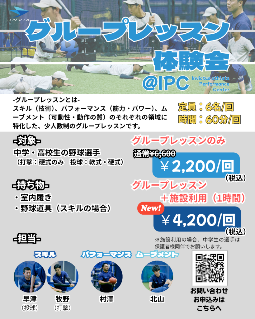 グループレッスンは、チームの垣根を越えて同じ課題感を抱えた選手が集い、そこに対してコーチがアプローチさせていただく内容になっています。